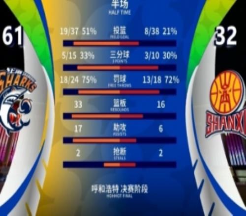 没悬念了吧上海半场6132领先山西29分后者无球员得分上双