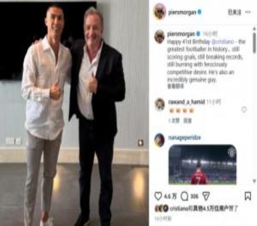 C罗本人点赞!摩根社媒晒照为C罗庆生:41岁生日快乐,史上最佳