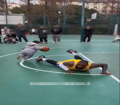 极目新闻记者 郭奕这边,一脸稚气的幼童娴熟拍着篮球,竟将NBA超级球星“勒布朗·詹姆斯”给晃倒;那边,詹姆斯又被...