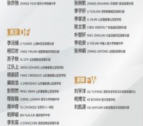 将参加蒙太古杯!U16国足名单:刘凯源、李佑安、张林峒在列