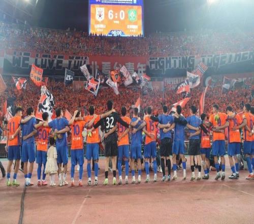 齐鲁晚报·齐鲁壹点记者 尹成君去年8月31日,6:0大胜国安后,泰山球员与球迷一起庆祝。(泰山俱乐部供图)提起中超最...