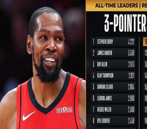 杜兰特生涯三分数超越杰森特里升历史第11,距第十卡特仅7记