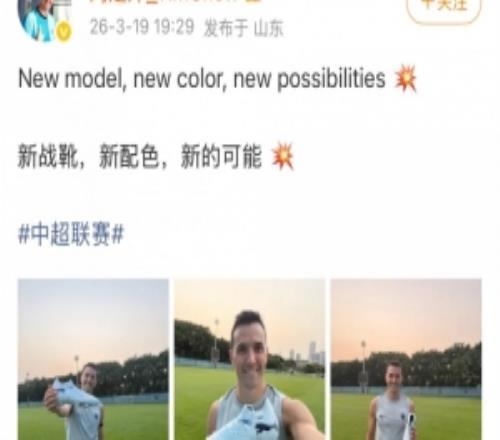 体育播报3月19日宣 中超第3轮,深圳新鹏城将在客场对战青岛西海岸。今日深圳中场周定洋更新社媒,晒出与新球鞋...
