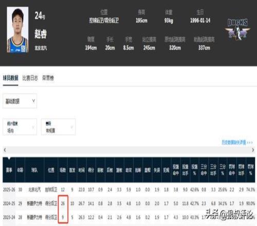 实际上与他效力新疆男篮期间,偏低的出勤率存在直接的关系,作为单换周琦的国字号球员,两个赛季加起来一共才打了35场常规赛和6场季后赛。