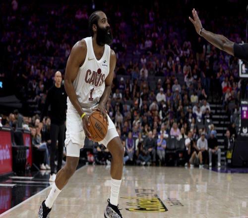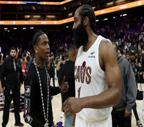 哈登代表骑士队首秀后,忠实粉丝说唱歌手突然出现在赛后采访现场在詹姆斯·哈登代表克利夫兰骑士队首秀后,特拉...