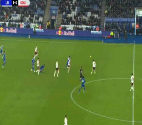 下半场补时第6分钟,南安普顿球员斯图尔特助攻谢伊-查尔斯打入一球。