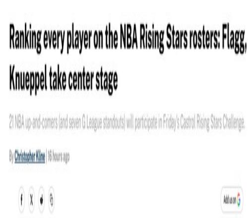 杨瀚森第22名!美媒公布NBA新秀赛球星排名:火箭队谢泼德高居第6_24直播网