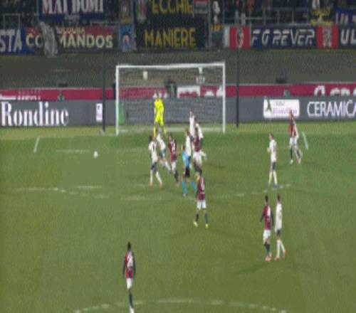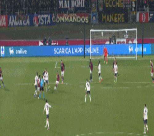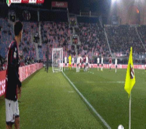 第33分钟,博洛尼亚左侧角球,卡斯特罗抢点破门,博洛尼亚1-0拉齐奥