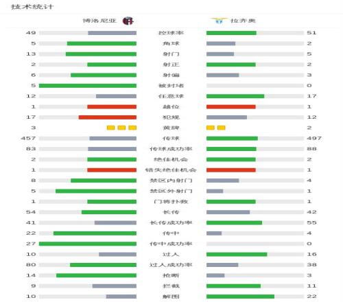 北京时间2月12日意大利杯 1/4决赛,博洛尼亚对阵拉齐奥。博洛尼亚圣地亚哥-卡斯特罗破门。拉齐奥诺斯林破门。最终比分博洛尼亚 2-5 拉齐奥。