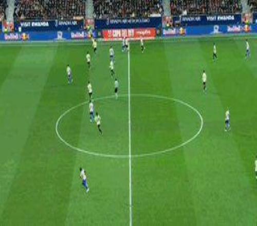 第85分钟,费兰回传,巴埃纳断球,埃里克·加西亚出脚太慢放倒巴埃纳,裁判开始出示黄牌,观看回放后改为直红。