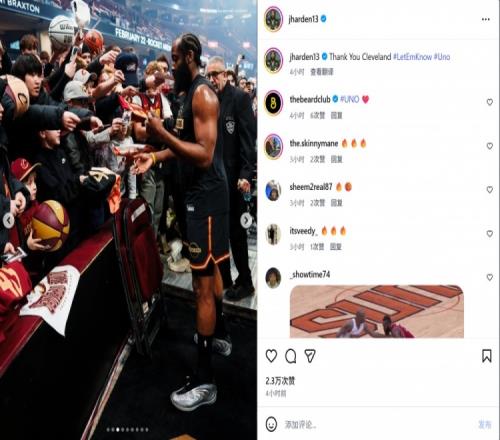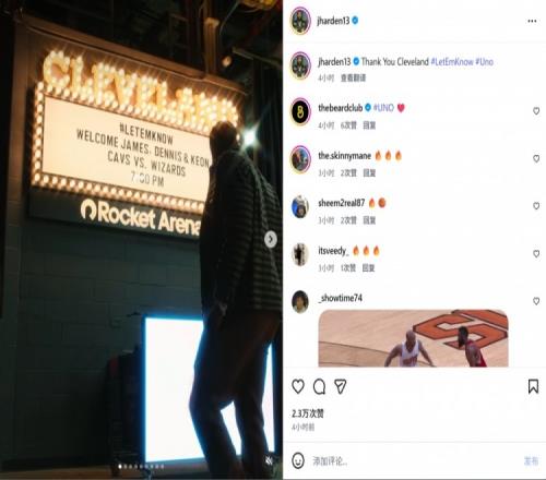 今天哈登更新INS晒出昨日赛前和赛场瞬间,写道:“感谢克利夫兰 #让大家都知道 #Uno”