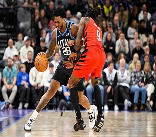 本场比赛中,爵士的先发得分后卫布莱斯-森萨博(Brice Sensabaugh)看起来得到了不少分数,但是他在场上的效果实际上是非常糟糕的。森萨博全场出场35分31秒,投篮19中8,三分线外11中5,罚球9中7,得到了全队最高分28分外加4篮板的数据,还有1次失误和3次犯规,正负值则是低到了全场最低的-27。换句话说,森萨博在场的36分多钟,爵士在场上时球队输了27分,而森萨博不在场的11分多钟,爵士反而赢了11分。