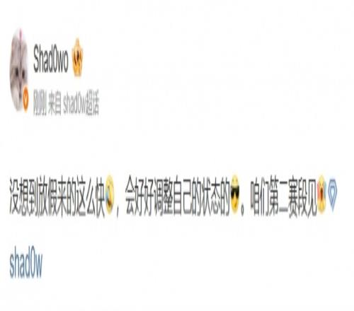 体育播报2月14日宣 昨日LCP第一阶段季后赛上,CFO面对GZ大比分1-3落败季后赛一轮游出局,为此队内打野(前BLG打野)Shad0w更博:没想到放假来的这么快,会好好调整自己的状态的。咱们第二赛段见