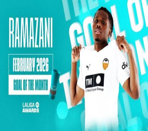 瓦伦西亚的拉马扎尼在对阵莱万特时轰出一记无解的凌空抽射,被评为二月最佳进球。这粒进球的超高水准,完全配得上德比大战的分量。