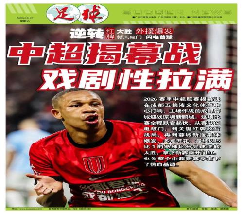 记者鲁蜜报道2026赛季中超联赛揭幕战在成都五粮液文化体育中心打响,主场作战的成都蓉城迎战深圳新鹏城。这场比赛全程跌宕起伏,从客队闪电破门,到关键红牌改写战局,再到蓉城新援集体爆发、多点开花,最终蓉城以5比1的悬殊比分完成逆转大胜,拿下新赛季开门红,也为整个中超新赛季定下了热血基调。
