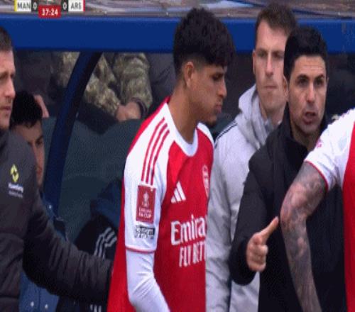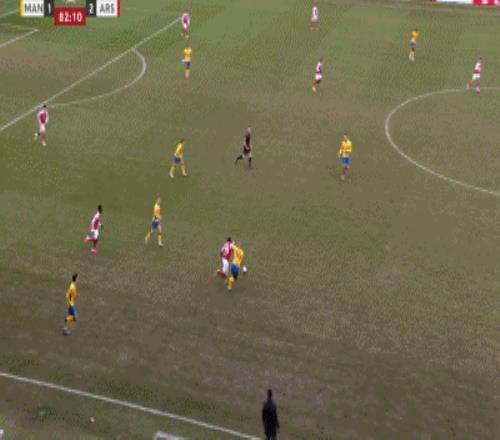 第83分钟,错失机会!萨卡近距离射门被门将用腿挡出