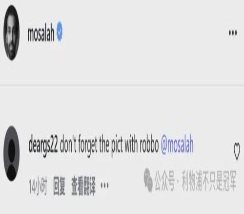 今天还有球迷在这张照片下给萨拉赫留言:“别忘了跟罗伯逊合影”。
