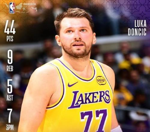 3月7日,湖人128比117击败步行者,本场比赛,东契奇效率全开,出战31分钟,全场25投14中,贡献44分9篮板5助攻。