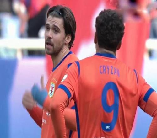 第18分钟,克雷桑禁区内被绊倒,裁判给了点球,随后亲自主罚命中,山东泰山2-0!