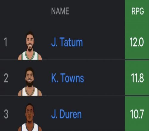 赛后,数据媒体StatMuse调侃道:“ 塔图姆目前是东部的篮板王。”