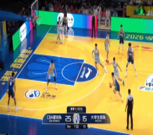 体育播报3月7日宣 全明星星锐赛,大学生联队34-43落后南北方星锐队。
