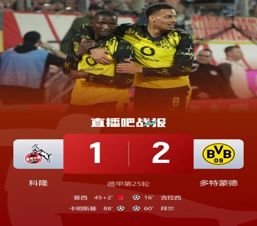 吉拉西、拜尔破门,多特客场2-1战胜十人科隆。