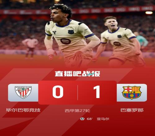 亚马尔精彩兜射制胜,巴萨1-0毕尔巴鄂,联赛3连胜,4分优势继续领跑积分榜。