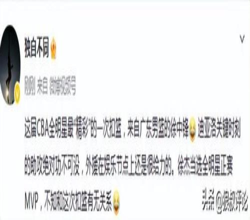 媒体人“苏群”发文点评:徐杰最后还来一记托举梦想扣篮,票王+MVP!