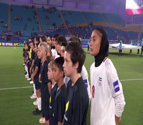 后两轮比赛,伊朗女足球员均敬礼+唱国歌