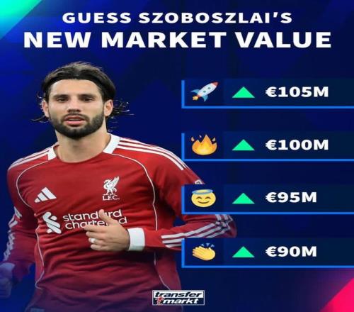 在德转3月9日将会更新英超球员身价的情况下,他们也对现有身价8500万欧元的索博斯洛伊进行了身价预热。