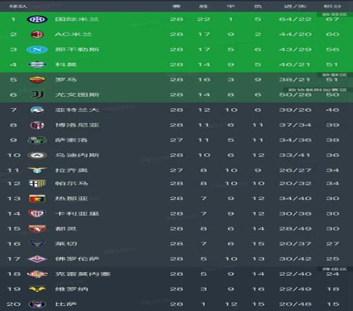 北京时间3月9日,意甲第28轮只有拉齐奥和萨索洛的比赛还没有进行,已经结束了9场对决,快猫入口下载看看最新积分榜的变动!
