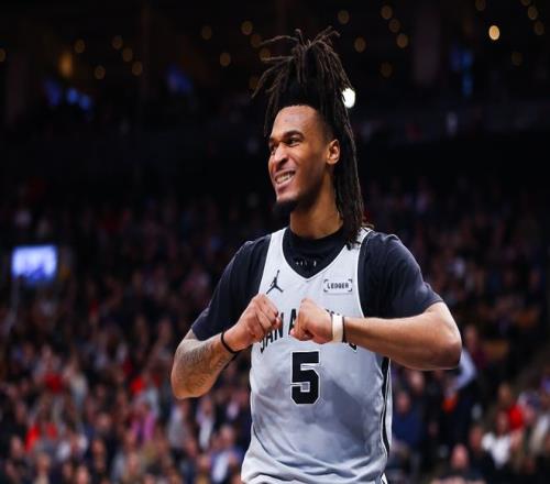 马刺队这边,文班亚马13投9中,高效砍下29分8篮板2抢断4盖帽,正负值+27;榜眼哈珀表现抢眼,12投8中轰下20分2助攻;卡斯尔13中7贡献23分3篮板5助攻;福克斯15中9拿到20分10助攻。