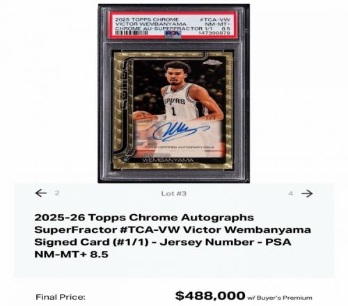 48.8万美元!有史以来最贵文班亚马签字球星卡诞生!