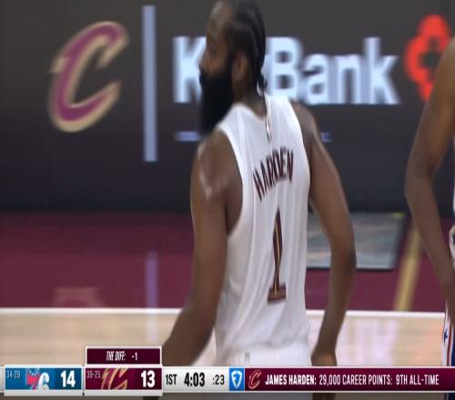 哈登通过4记罚球已经拿到4分,这样他个人生涯得分正式突破29000。
