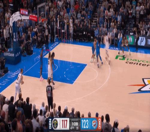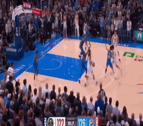 最后,戈登后场超远三分,三不沾,雷霆三杀掘金。