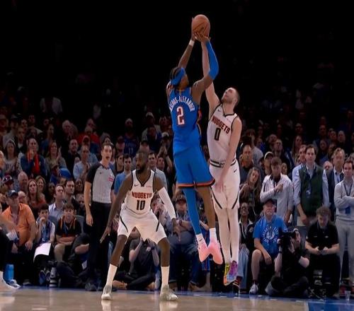 雷霆主场迎战掘金,被大家称为西决预演。雷霆缺少双塔,杰伦威也不在,掘金穆雷复出,全主力出击,因此胜利的天平偏向于后者。如果掘金这都赢不了,想要冲突西部就很难了,约基奇的MVP也将拱手让给亚历山大。一个球的差距,基本是打了一个五五开。双方你来我往,都有领先两位数的时候,但是都