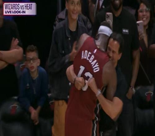 下班了阿德巴约83分超越科比纪录之后下场与斯波拥抱庆祝_24直播网