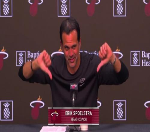 赛后,热火主教练斯波尔斯特拉接受采访时,记者表示:“接下来我要问一个跟阿德巴约无关的问题。”