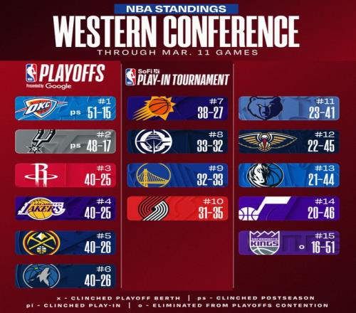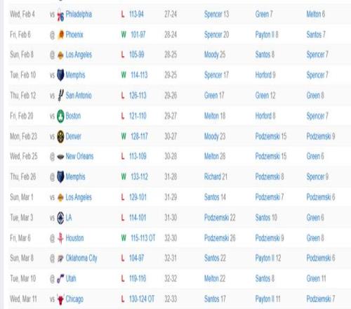 自1月31日对阵活塞后库里就高挂免战牌,这期间勇士的15场比赛输掉了其中10场,勇士也从西部第八掉到西部第九,勇士与快船的胜场已经拉开到1个,勇士已经处于附加赛下半区。