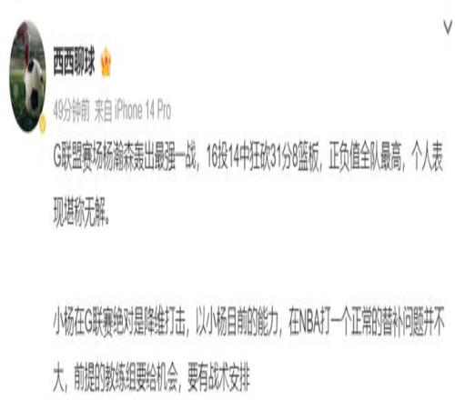 这场比赛后不少的美国球迷为杨瀚森点赞,有人盛赞他是中国约基奇,也有人盛赞此役杨瀚森才是最佳球员。