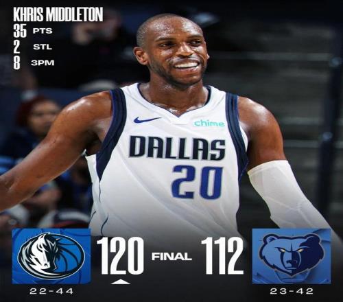 常规赛,独行侠客场120-112战胜灰熊。