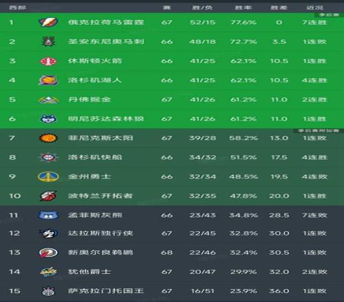 北京时间3月14日,今日的NBA常规赛结束了所有比赛,快猫入口下载看看西部的最新积分榜变动,主要的信息是:火箭107-105绝杀鹈鹕,森林狼127-117战胜勇士,太阳115-122不敌猛龙,快船119-108掀翻公牛,开拓者124-114战胜爵士,独行侠105-138惨败骑士,灰熊110-126不敌活塞!