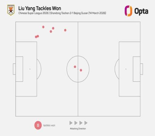 赛后,据知名数据机构Opta的统计,刘洋单场完成了8次抢断,刷新了自2012年Opta采集相关数据以来,山东泰山球员中超单场抢断纪录。
