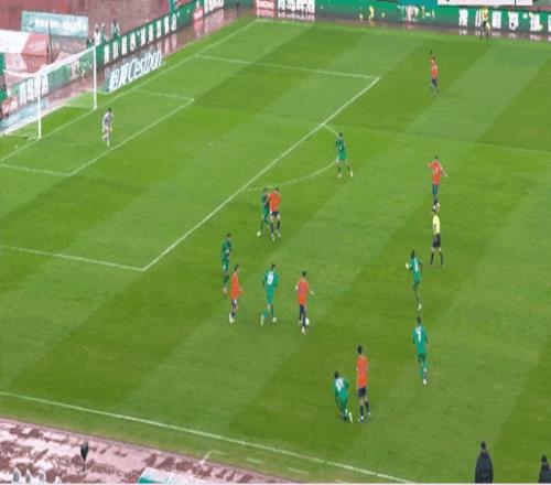 第62分钟,王刚禁区右侧的一脚弹射稍稍边线后擦左侧立柱出底线。