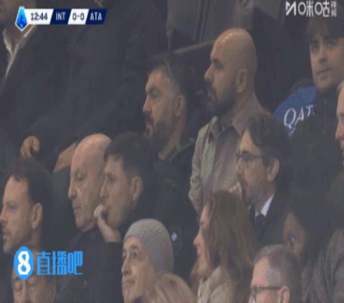 第13分钟,转播镜头给到看台,意大利主帅加图索,国米高层马洛塔、萨内蒂都在现场↓