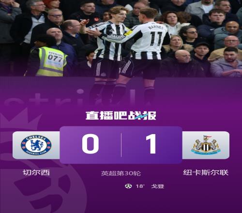 全场比赛结束,最终切尔西0-1纽卡斯尔联。