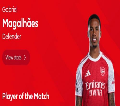 本场比赛加布里埃尔首发出场发挥稳健,贡献8次解围,赛后当选英超官方评选出的本场比赛最佳球员。