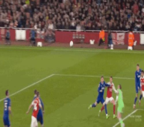逃过一劫的阿森纳,第24分钟正面打穿了埃弗顿的防线,埃泽送出手术刀直塞,哈弗茨顺势杀入太妃糖禁区,随后和防守球员对抗后倒地,不过主裁判没有任何表示,半场结束之前,阿森纳遭遇打击,廷伯受伤无法坚持,被莫斯克拉替换下场。