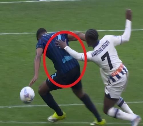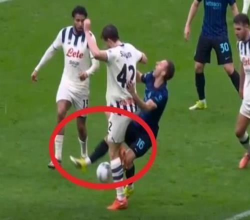 昨晚国米主场1比1被亚特兰大逼平的比赛中,意甲真假的含金量又一次上升。本场比赛第81分钟,当时的比分是国米1-0领先。亚特兰大发动进攻,此时球到了苏莱曼纳脚下。面对邓弗里斯,苏莱曼纳做了一个明显推人犯规的动作。回放看得清清楚楚,苏莱曼纳伸手直接推搡了邓弗里斯,导致国米后卫失去平衡、倒地。这不是那种“体毛级”的接触,这是实实在在的发力。球被断下,苏莱曼纳随后打门被索默扑出,克尔斯托维奇补射空门入网。