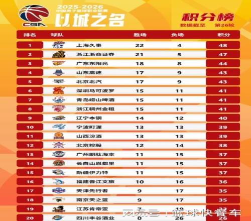 CBA积分榜最新排名出炉!上海逆转稳居第1:辽篮有望杀回前四_24直播网